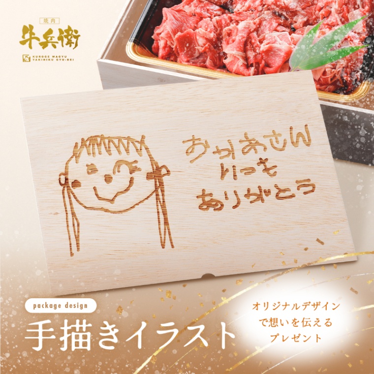 オリジナル イラスト 名入れ 黒毛和牛 小間切れ肉 500g