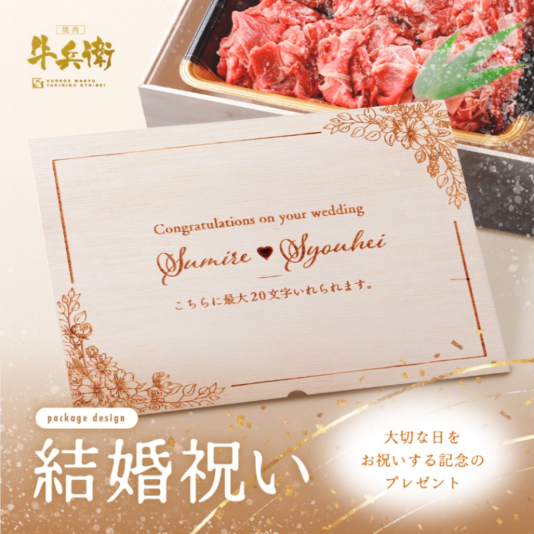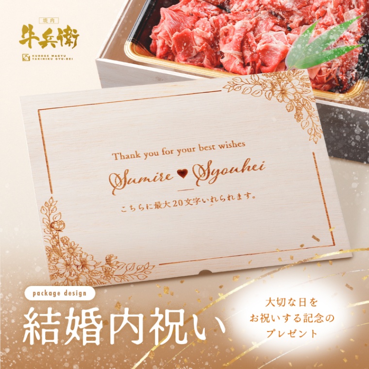 結婚祝い 内祝い 洋風 名入れ 黒毛和牛 小間切れ肉 500g