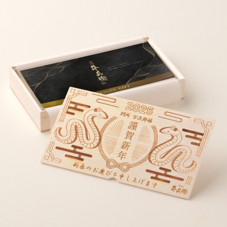 新年に贈る2025年の干支、巳のデザインをあしらった肉ギフト。