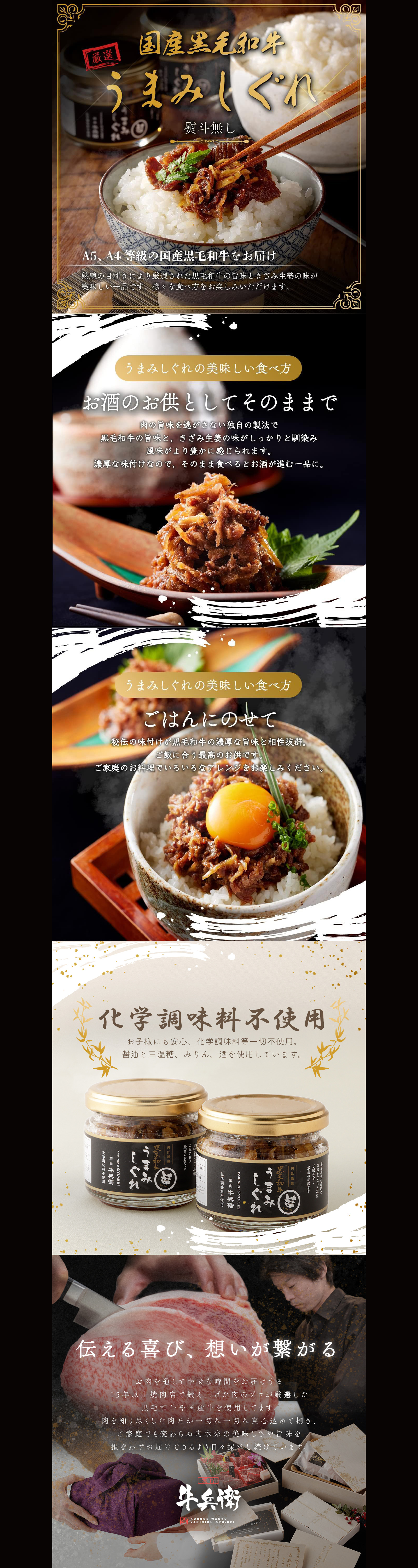 肉の旨味を逃さない独自の製法で、黒毛和牛の旨味がきざみ生姜と味がしっかり馴染み、風味がより豊かに感じられます。濃厚な味付けで、ご飯やお酒がすすむ一品です。醤油と三温糖、みりん、お酒を使用しており、化学調味料を使っていないので、お子様にも安心。ご家庭のお料理で、いろいろなアレンジをお好みでお楽しみください。
