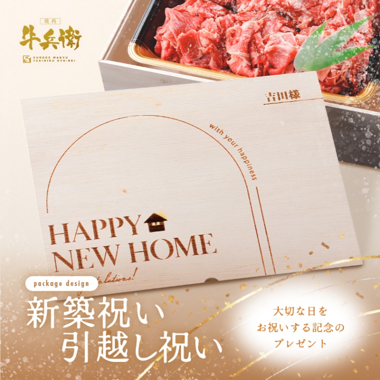 新築・引越し祝い オリジナル 名入れ 黒毛和牛 小間切れ肉 500g