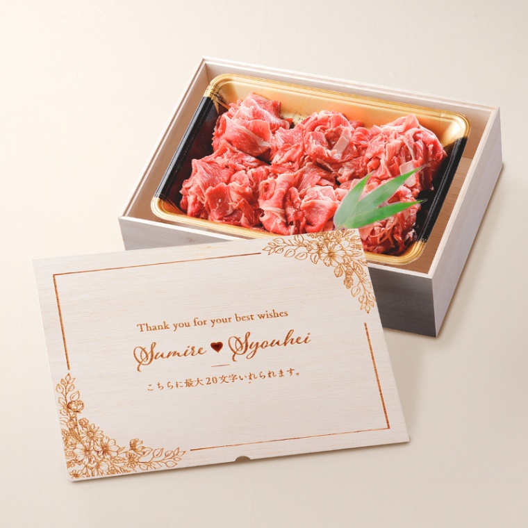 結婚祝い 内祝い 洋風 名入れ 黒毛和牛 小間切れ肉 500g
