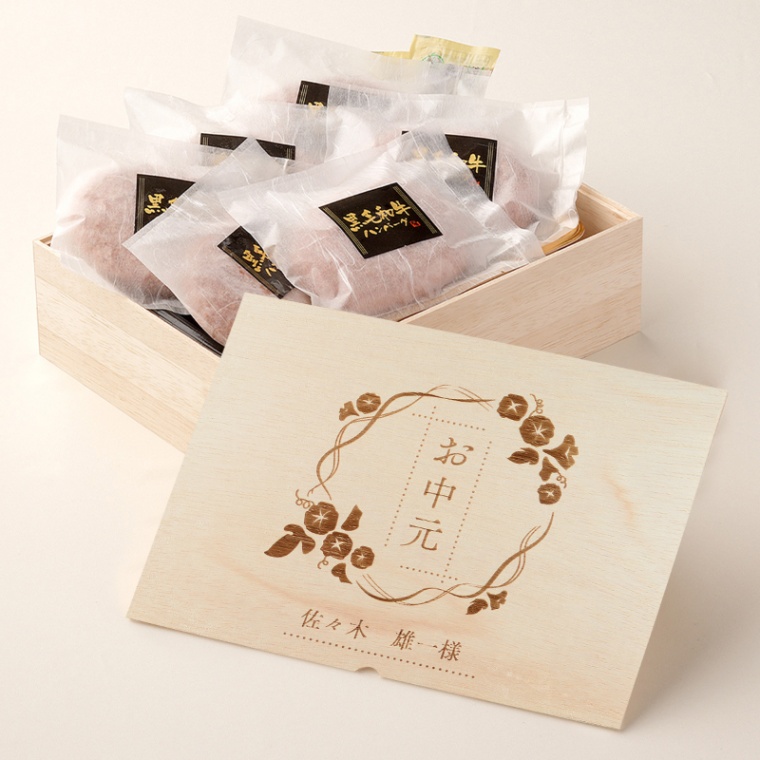 お中元で贈るギフトとして、黒毛和牛の肉ギフトを木箱に自由な文字を入れて、世界に一つだけのオリジナルギフトを製作いたします。 半年の締めくくりとして、豪華な黒毛和牛 肉ギフトはもらった方に最も人気の高い商品の一つです。