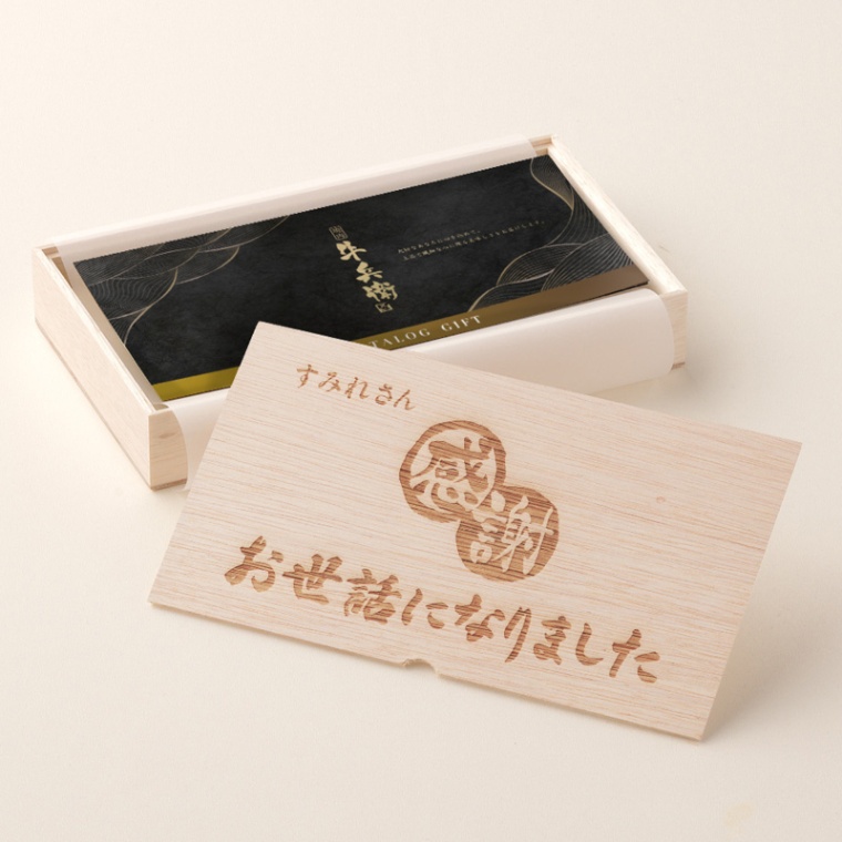 お世話になった感謝のギフトとして、木箱に名入れして、